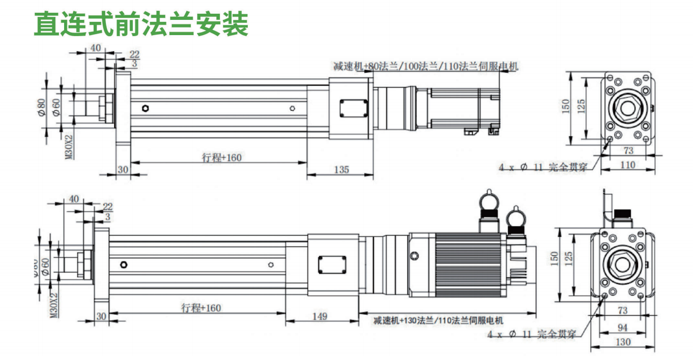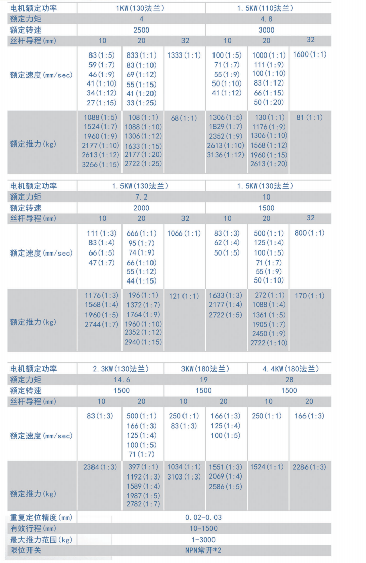 丝杆导程:5mm, 10mm,25mm